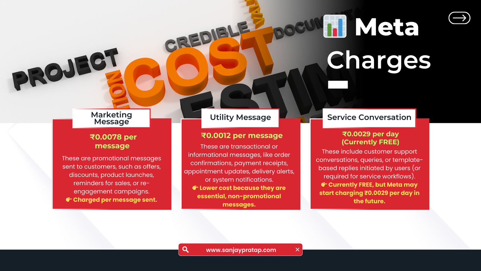 ๐ Service Conversation/Template Message – โน0.0029/day (Currently FREE)